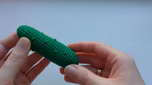- Use a yarn needle to weave in any loose ends at the top and bottom of the cucumber.