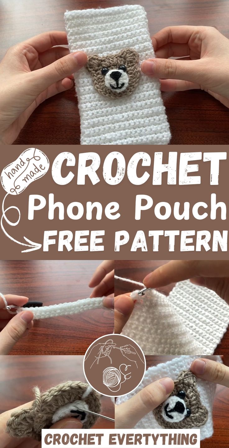 After attaching the bear's head features, start crocheting the phone case to fit the phone's length.